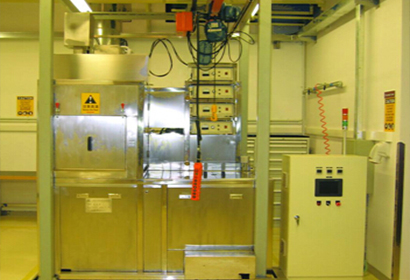 本機(jī)特性:采用旋轉(zhuǎn)噴洗及超聲波清洗相結(jié)合的方式,對于單個行腔復(fù)雜的大型零件清洗效果理想。